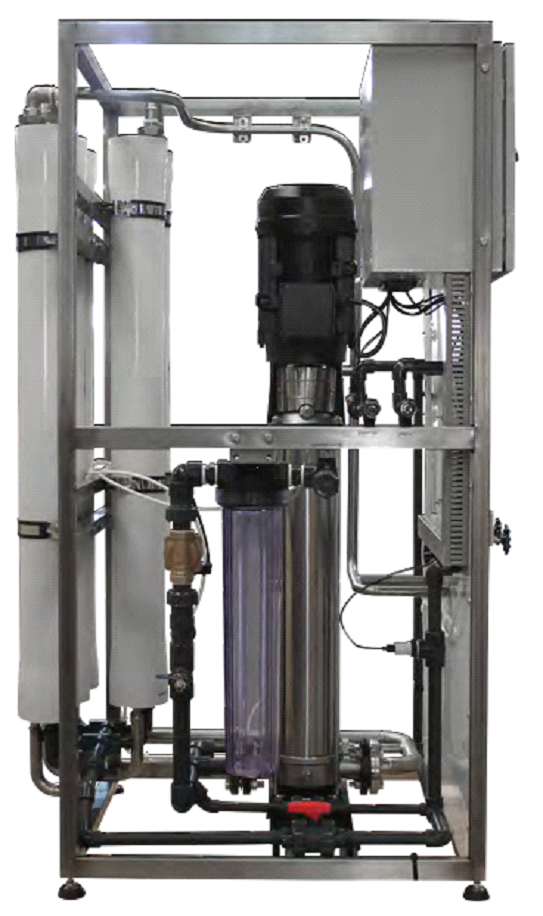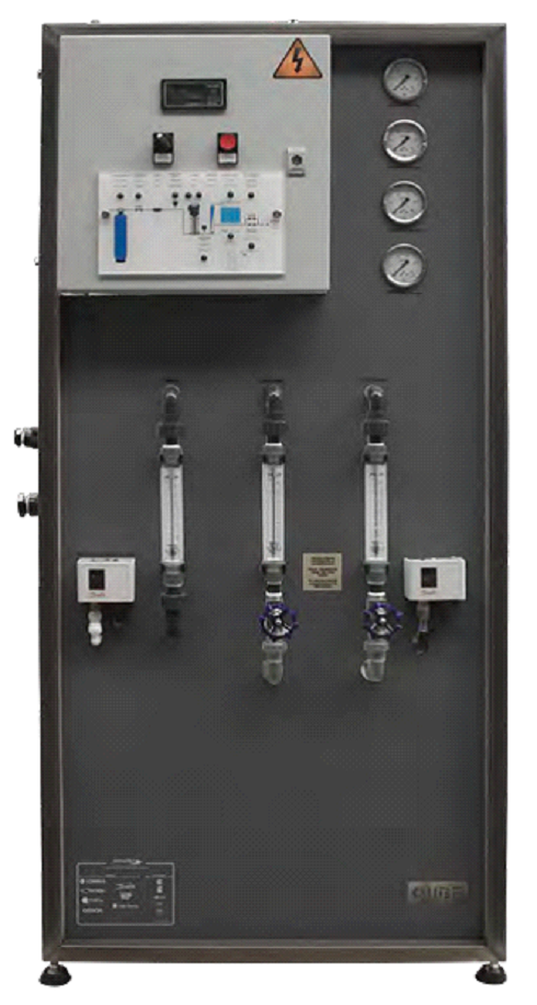 Osmose inverse cube avec CIP OICX4040F. Sels dissous totaux maximum 10000 ppm, température 25°C, pression jusqu’à 25 Bar, conversion 40-60%.